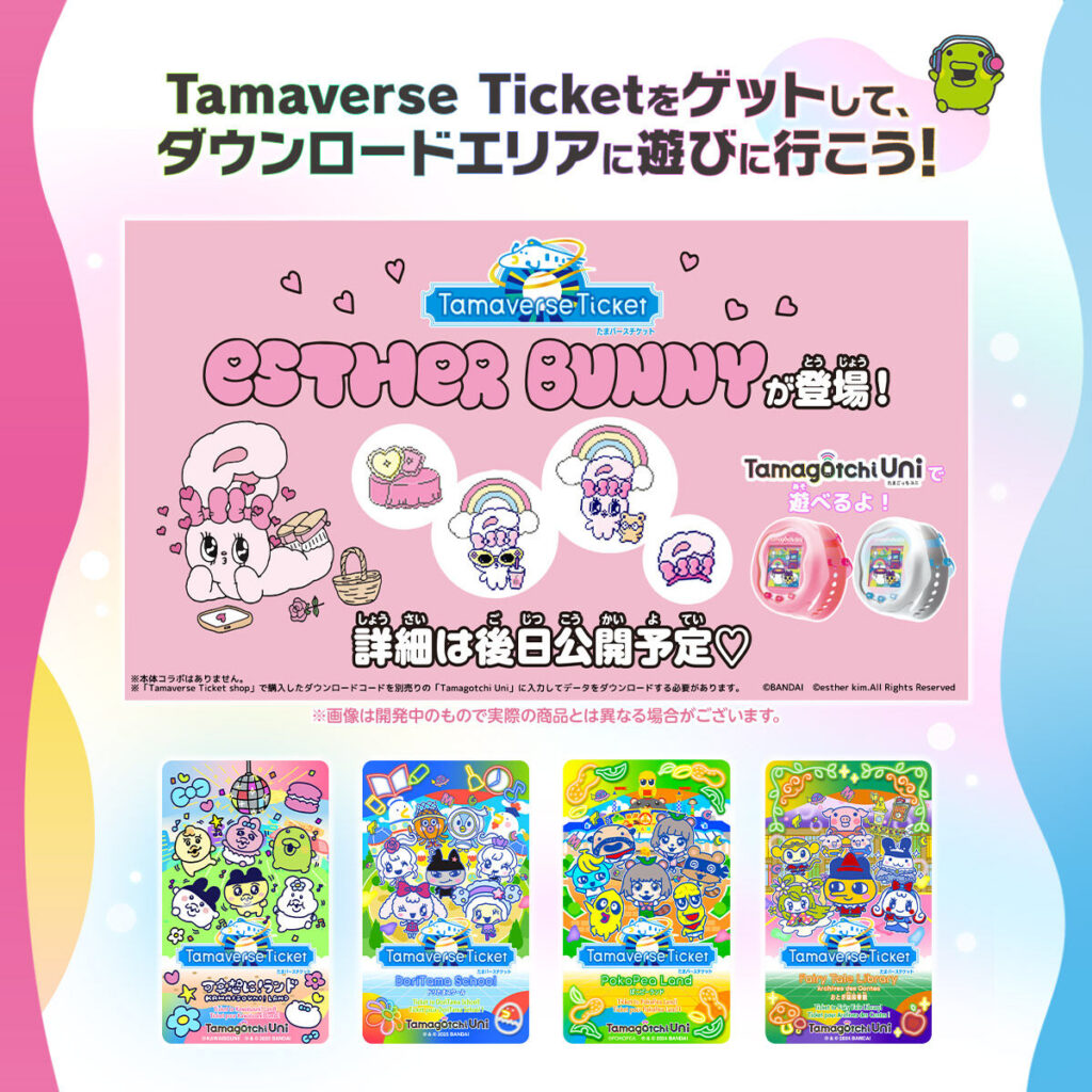 また,Tamagotchi Uniとガーリーなウサギのキャラクター「エスターバニー」とのコラボも決定した。バニーたちを育成したり,エスターバニーの世界観を楽しめたりするTamaverse Ticketが登場する。詳細は後日公開される予定だ。